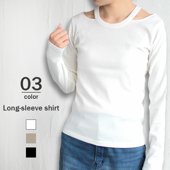 【999円均一】レディース トップス ロンT Tシャツ カットソー 長袖 テレコ 肩開き レイヤード 無地 シンプル アメカジ カジュアル 春服 春物 M L「1010-15」