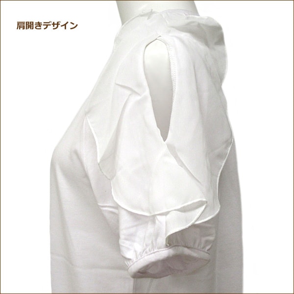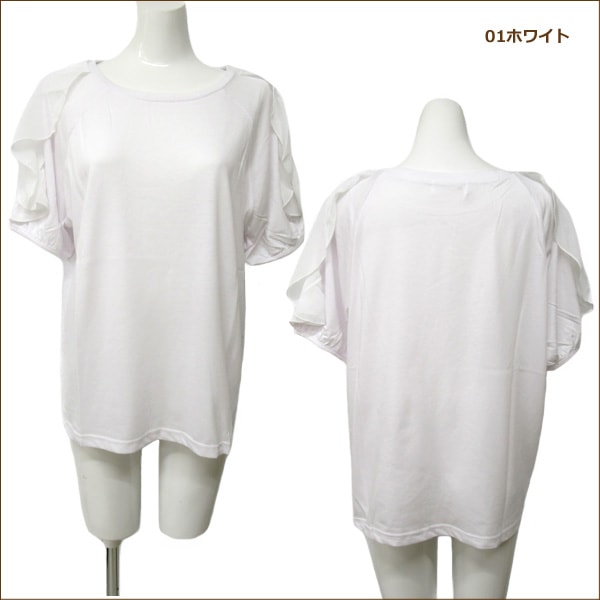 カラー 01ホワイト 03ブラック 83ネイビー 商品説明 ※シンプルなデザインの袖シフォンフリル付き肩開きカットソー♪