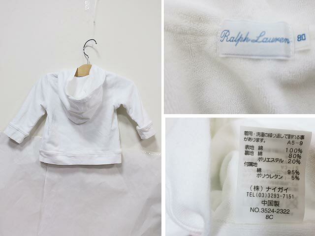 【中古】Ralph Lauren ラルフローレン 子供服 男の子 女の子 ベビー ホワイト パーカー 長袖 80cm