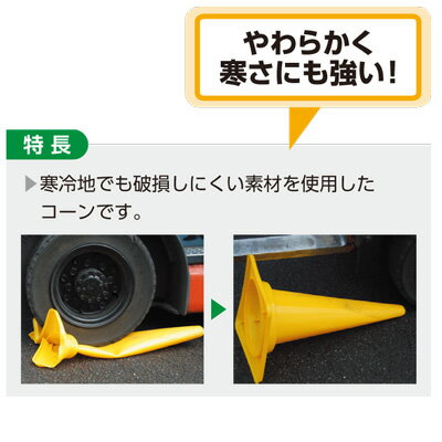 サイズ 380×380×700mmH 材質 低密度ポリエチレン 重量 約850kg ◆特長◆ ●やわらかい素材で寒冷地でも破損しにくい素材を使用したコーンです!