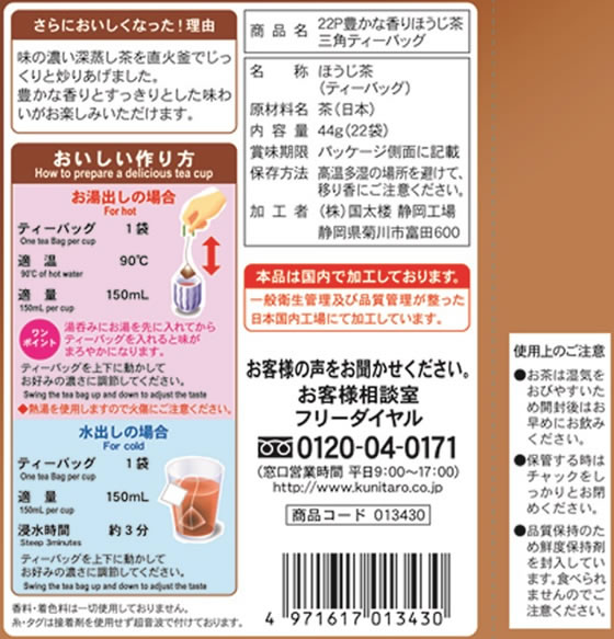 【検索用キーワード】くにたろう クニタロウ ゆたかなかおり ほうじちゃ ユタカナカオリホウジチャ 22P 22袋 22個 22バッグ ティーバッグ ティーパック 水出し お湯出し お茶 ほうじ茶 RPUP_03早く・おいしく出る三角ティーバッグです。