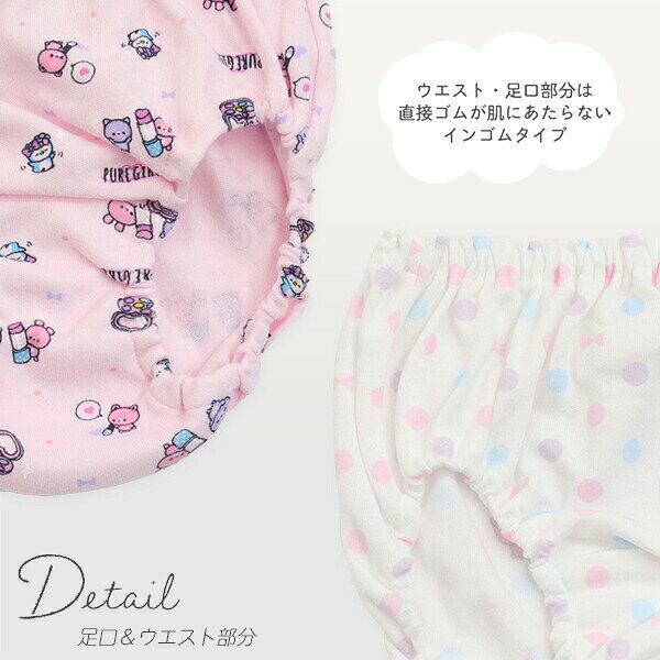 ゴムが直接肌に当たらないインゴムタイプ くるみゴムなので締め付けない履き心地 綿100%でお肌にやさしく 洗い替えにぴったり、おトクな2枚セットです。