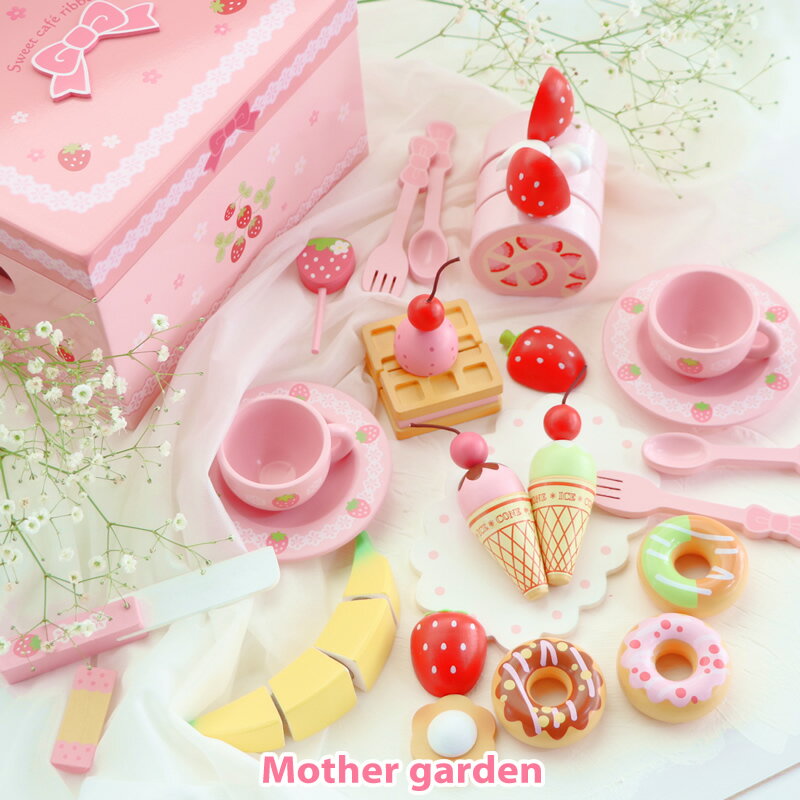 マザーガーデン 木のおままごと プレミアムシリーズ 《ストロベリー ティーパーティーセット》ままごと 野いちご プレミアムセット スイーツ 3歳 4歳 女の子 食材 知育玩具 誕生日プレゼント ままごとセット 木のおもちゃ ★★