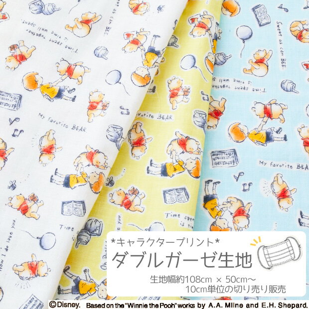 [数量5個から承ります][メール便2mまで]くまのプーさん プーさんとクリストファー・ロビン柄 ダブルガーゼ生地 約108cm幅×10cm単位計り売り| コットン プリント Wガーゼ 綿 マスク スタイ おくるみ ベビー キッズ キャラクター ふわふわ 手芸 手作り ハンドメイド