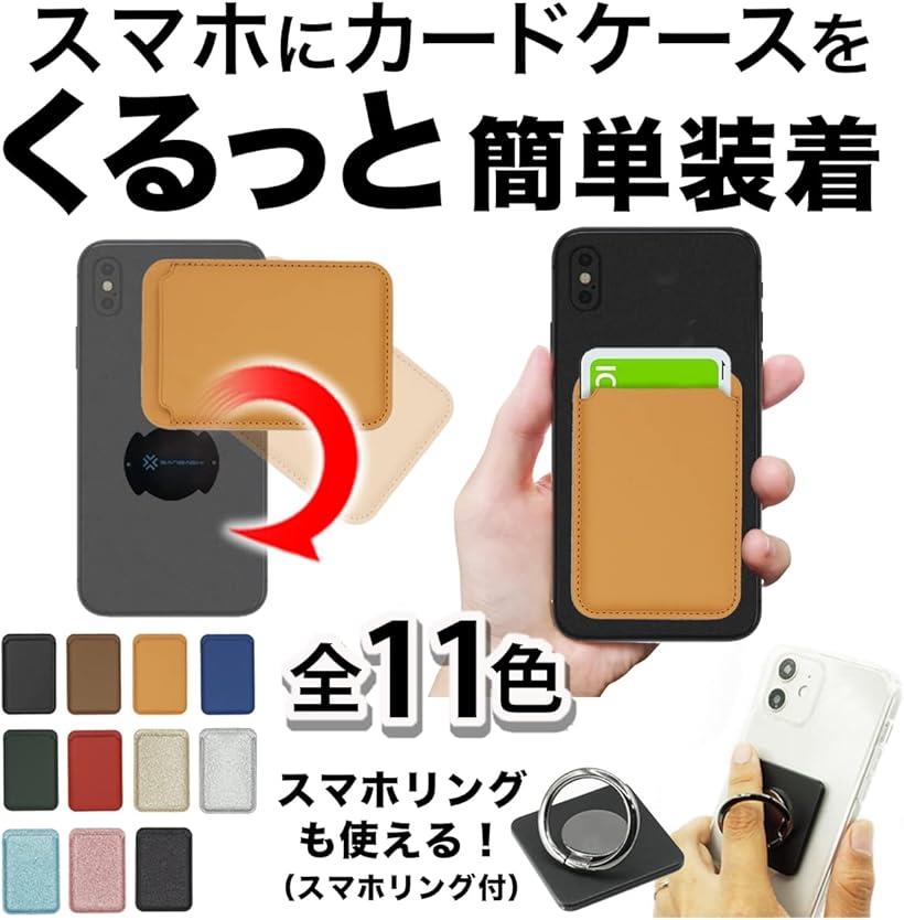 スマホにぴったり。くるっと装着 着脱簡単カードケース スマホリング付き ワイヤレス充電対応 iPhone/android対応(キャメル)