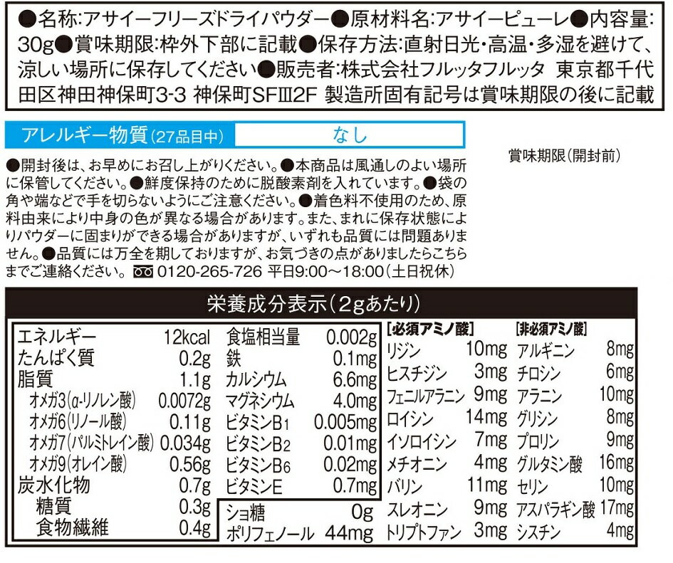 3袋セット フリーズドライパウダー アサイー 30g フルッタフルッタ FRUTA FRUTA