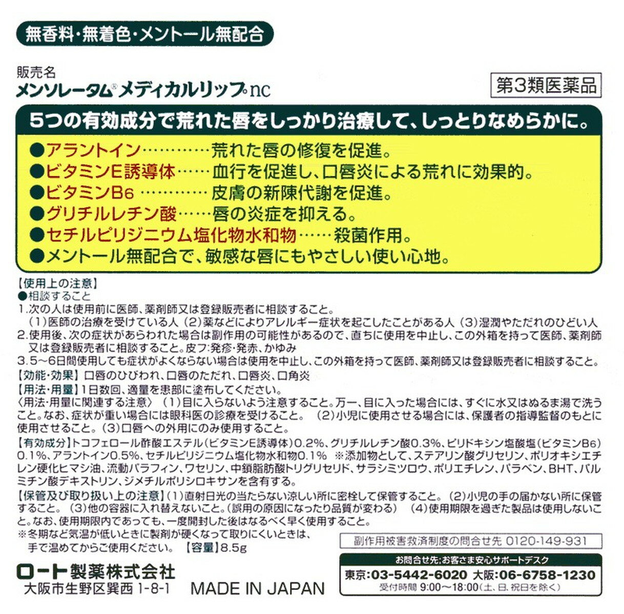 【第3類医薬品】ロート製薬 メンソレータム メディカルリップnc 8.5g無香