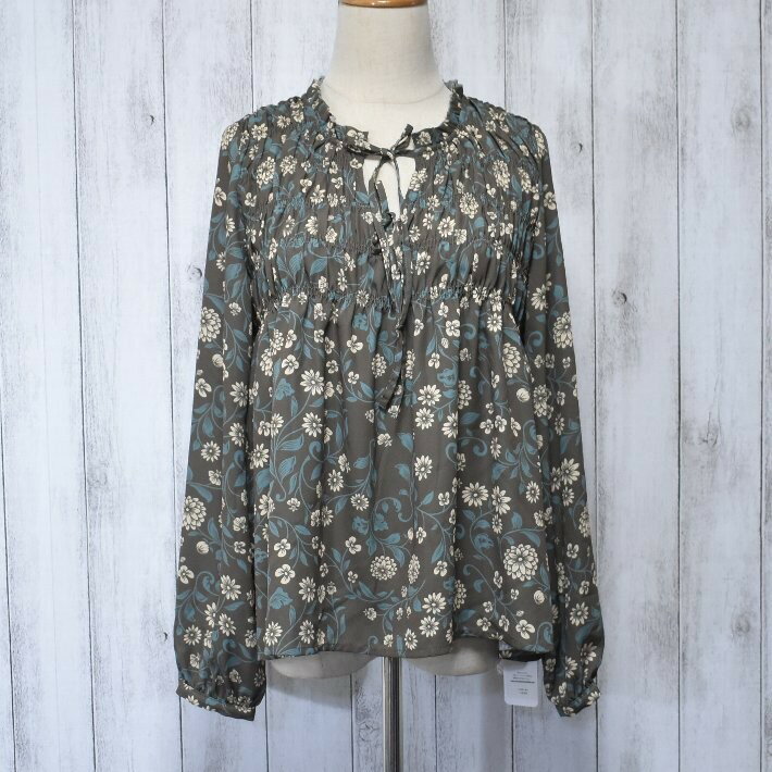 sunnyfabulousfield 花柄プリントの長袖シャーリングブラウス SFF016 【小】アウトレット 新古品 SDGs 新品 レディース チャコール ブラウン フリーサイズ