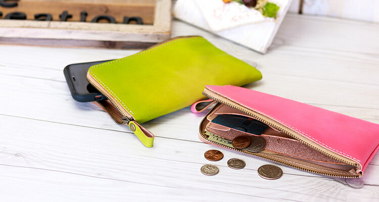 【栃木レザー】パステル染め 本革 L字 ファスナー 薄型長財布 小銭入れ カード 小さい うすい 薄い 日本製 日本製 栃木レザー 染め 手染め パステルカラー ギフト プレゼント GIFT