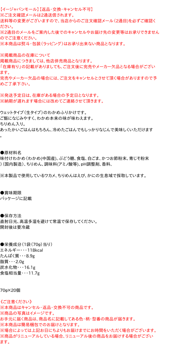 [関連キーワード:食品 ふりかけ 生タイプふりかけ チリメン 紫蘇 ワカメ ご飯 ごはん 弁当 おにぎり]【イージャパンショッピングモール】内のみのお買い物は、送料一律でどれだけ買っても同梱する事が出来ます。