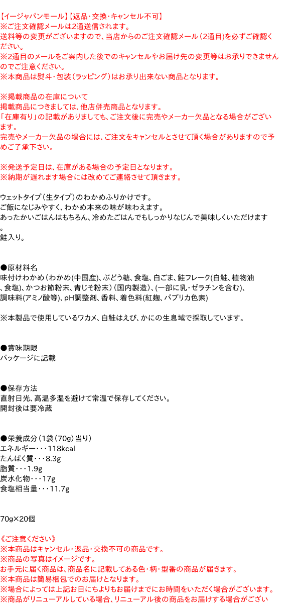 [関連キーワード:食品 ふりかけ 生タイプ 紫蘇 ワカメ 鮭 ご飯 ごはん 弁当 おにぎり]【イージャパンショッピングモール】内のみのお買い物は、送料一律でどれだけ買っても同梱する事が出来ます。