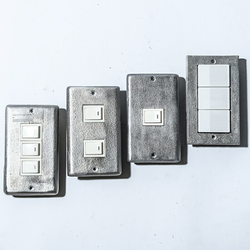 アルミニウムの質感と色合いがインダストリアルなスイッチプレート。