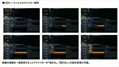 ■LEDシーケンシャルウインカー採用 配線の接続を一部変更することでウインカーの「流れる」、「流れない」の設定変更が可能。