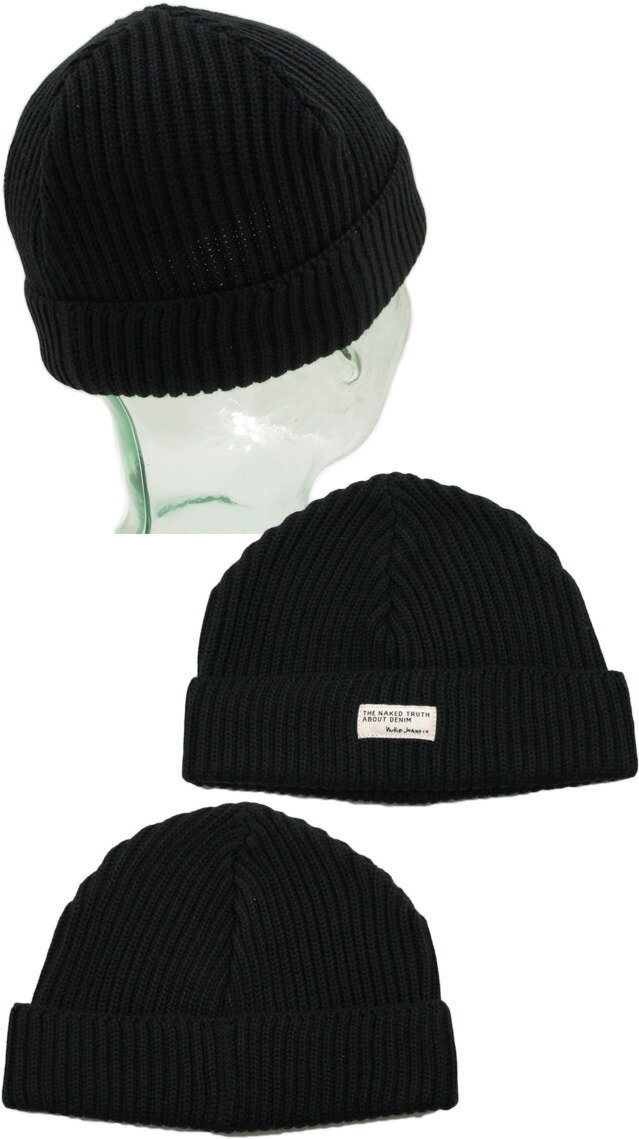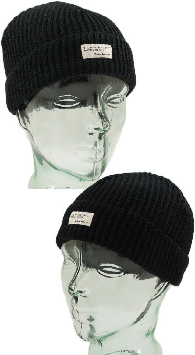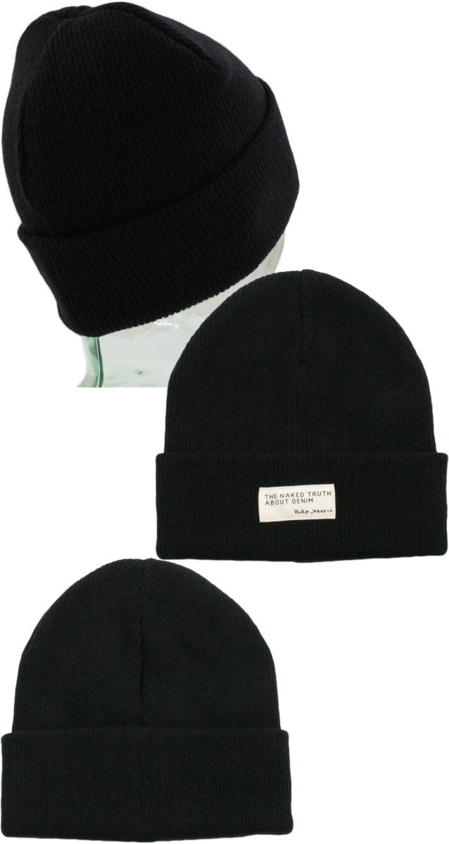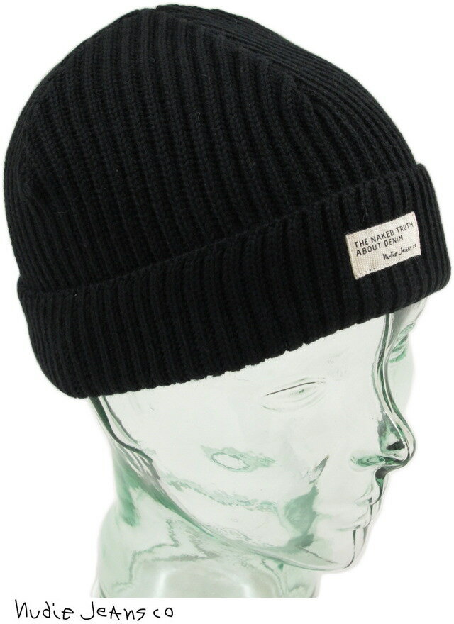 Nudie Jeans co/ヌーディージーンズ NICHOLSON BEANIE RIBニットキャップ/ビーニー BLACK(ブラック)