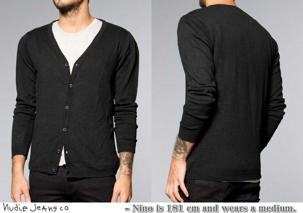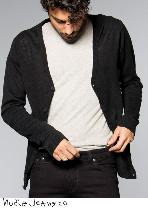 Nudie Jeans co/ヌーディージーンズ BOTVID CARDIGAN 綿×麻混ニット カーディガン BLACK(ブラック)