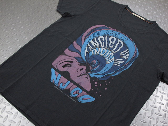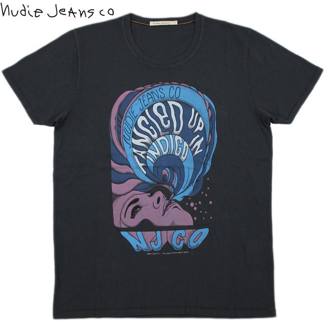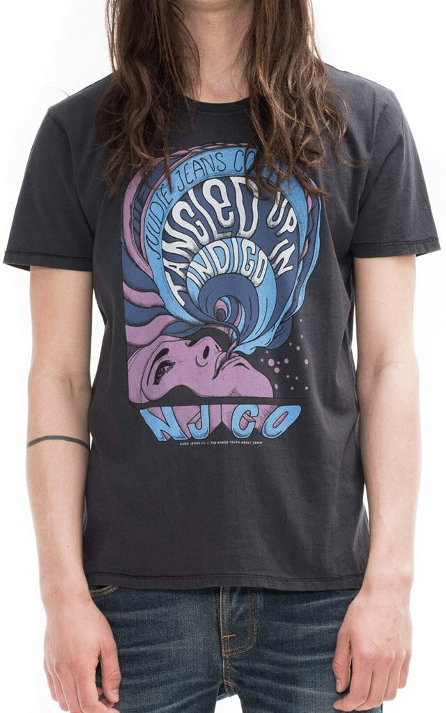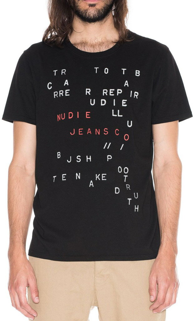 Nudie Jeans co/ヌーディージーンズ O-NECK TEE“TANGLED UP” オーガニックコットン、半袖プリントTシャツ/半袖カットソー BLACK(ブラック)