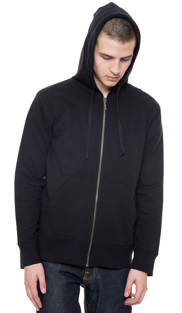 Nudie Jeans co/ヌーディージーンズ EBBE HOOD HEAVY SLUB. ライトウェイト、フルジップパーカー/TEEパーカ/カットパーカー/ジップフーディー BLACK(ブラック)
