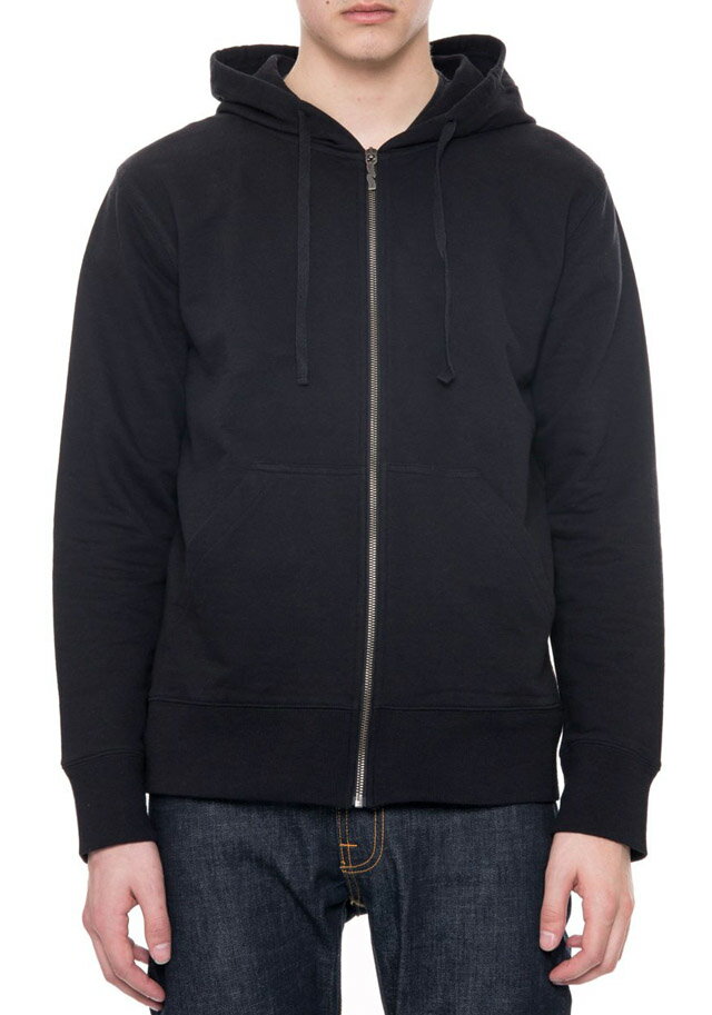 Nudie Jeans co/ヌーディージーンズ LOKE LIGHT ZIP HOOD ライトウェイト、フルジップパーカ/ジップフーディー BLACK(ブラック)
