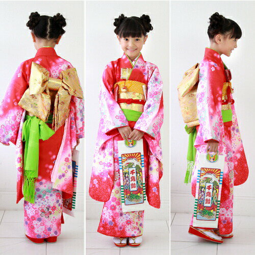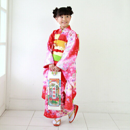 ※こちらはレンタル商品です※ >>レンタル商品ご利用ガイドはこちら 七五三着物レンタル23点セット!せっかくのお祝いの日だから、いつもより可愛くしてあげたいですね!【セット内容】四つ身着物・作り帯・長襦袢半衿・重ね衿・帯揚げ・帯締め志古貴・草履・バッグ箱迫・扇子・お守り・びら簪肌着・裾除け・伊達締め2本腰紐2本・コーリンベルト2本足袋…豪華23点セット! 【サイズ】●四つ身着物身丈…約133.5cm裄丈…約59cm袖丈…約76cm※肩上げ加工済み※身上げはされておりません●草履実寸…約20.5cm【素材】●着物・長襦袢…ポリエステル100%●作り帯…ポリエステル95%、ナイロン5%モデル身長…124cm※予約状況を確認してレンタル可か不可のメールをお送りします。