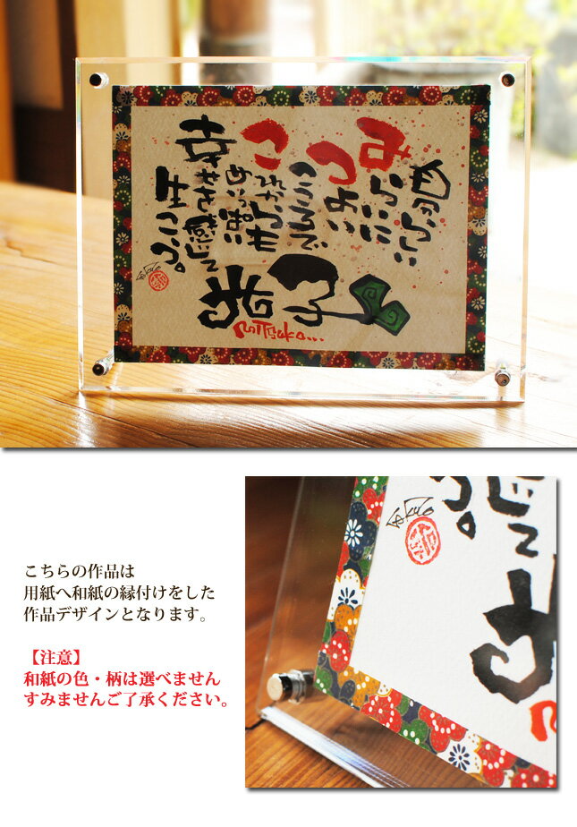 商品名 友禅和紙アクリルフレーム 2L (フルネーム不可) 商品 説明 額:アクリルフレーム 2L (透明度の高いアクリル純度99%) 商品サイズ:240×180mm 人気の用途は 誕生日、記念日、還暦、喜寿、古希、米寿、傘寿など長寿のお祝いや 歓送迎の贈り物、日頃の感謝 苗字のみで制作し新築御祝にと幅広く喜んで頂いております。