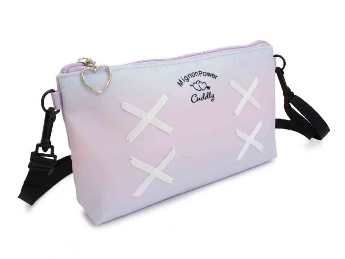 あみあげパステル F付きポシェット パープル 【メール便対応可】 ショルダーバック 斜め掛け 小学生 女の子 子供 キッズ 抗菌 おしゃれ かわいい スイッチライト持ち運びバッグ