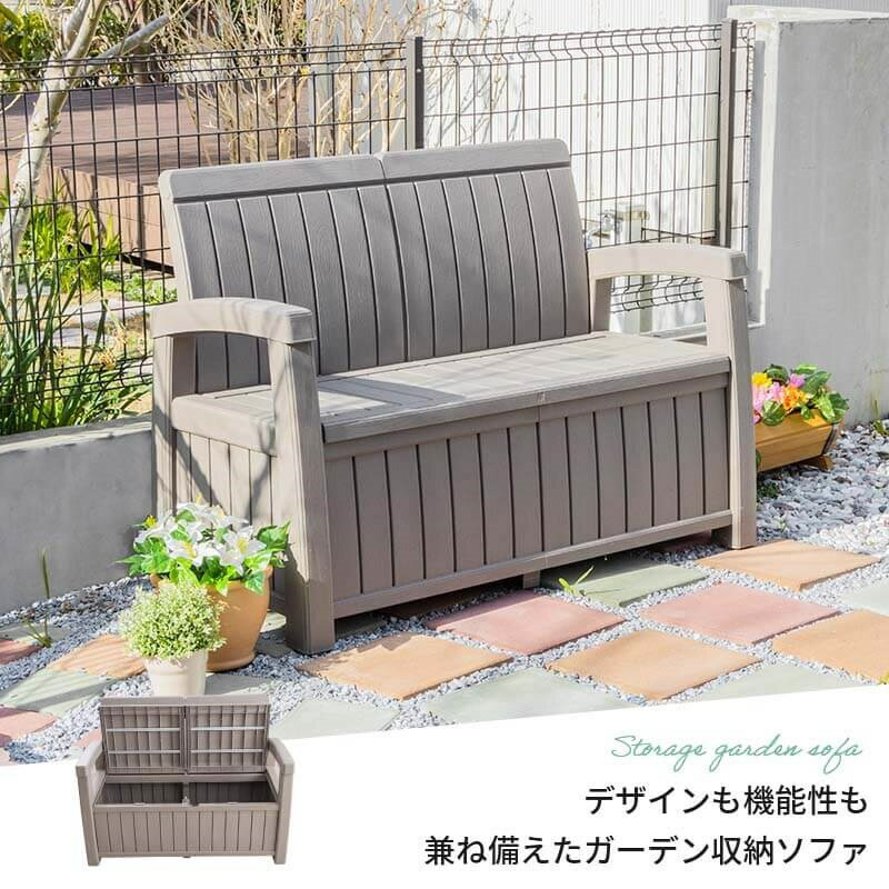 収納庫付き ガーデンソファ2人掛け 総容量184L4点セット 総容量336L