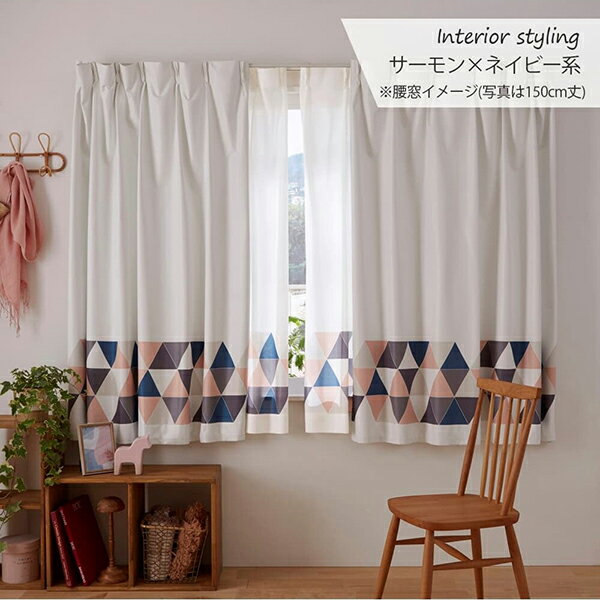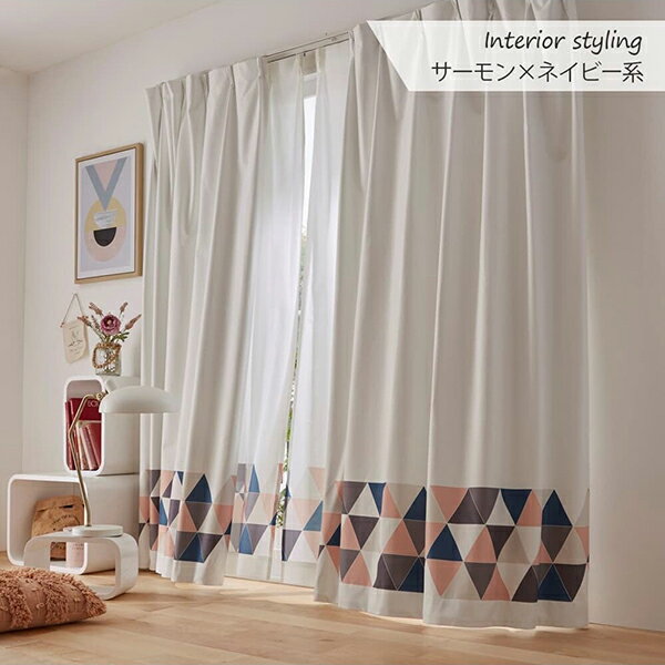 北欧トライアングル柄遮熱・防音・1級遮光カーテン&遮熱・昼間見えにくいレース4枚セット♪