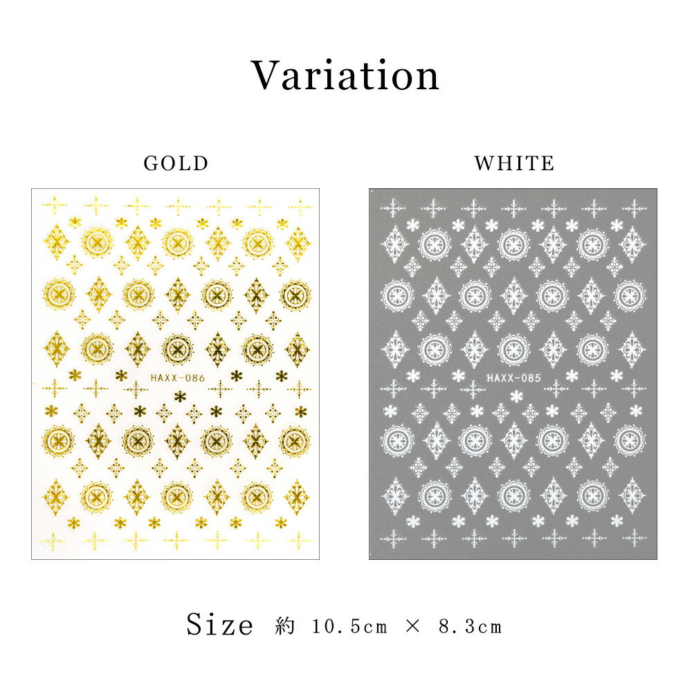 ネイルシール ダマスク柄シール (HAXX-086 / 085)ゴールド ホワイト おうち時間 ジェルネイル