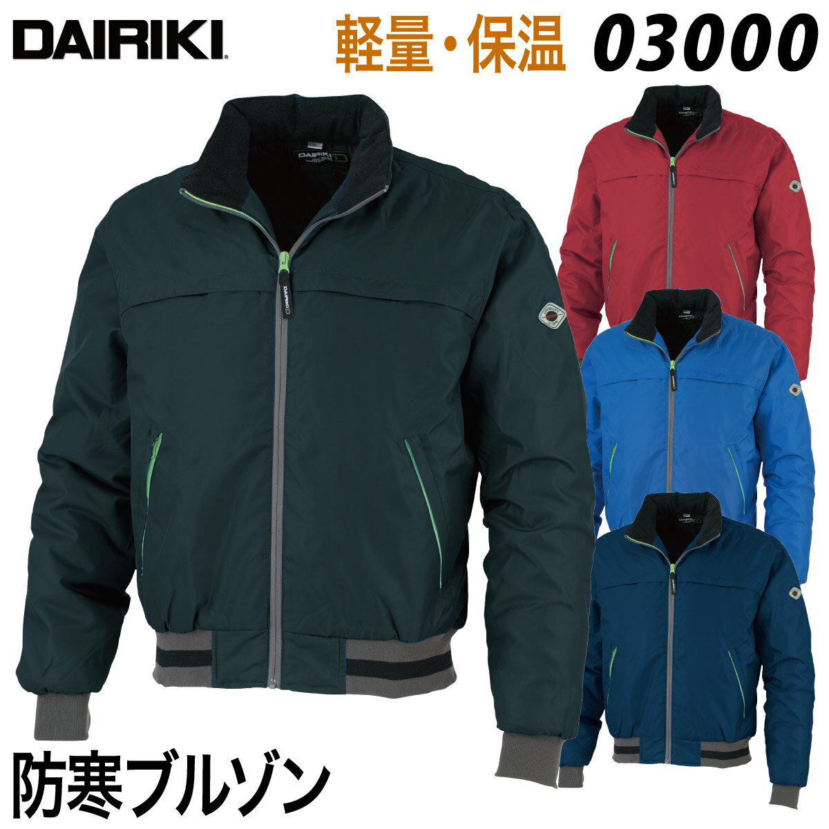 【DAIRIKI】防寒ブルゾン 03000 XO 大きいサイズ 軽防寒 作業着 作業服 軽量 ソフト 保温 袖口裾リブ かっこいい スタイリッシュ 防寒 秋冬 DW3000 大川被服