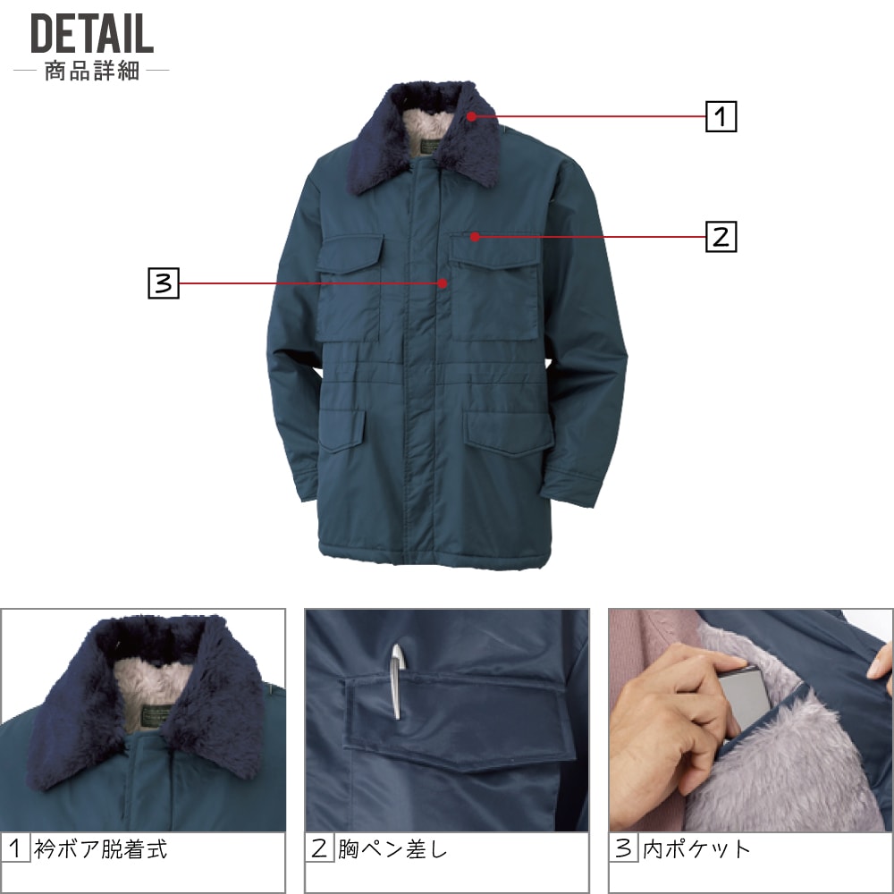 対象商品2点以上お買い上げで送料無料!対象外の商品でも3点以上お買い上げで送料無料!!■説明■パイロットジャンパー■商品仕様■素材:[表]ナイロン100% ツイル・撥水 [裏]アクリルボア特長:撥水/衿ボア脱着式/フード付/胸ペン差し付/ウエストドローコード/内ポケット付カラー:ネイビーサイズ:M/L/LL●本商品はご注文確定後、約2〜3営業日での出荷となります。
