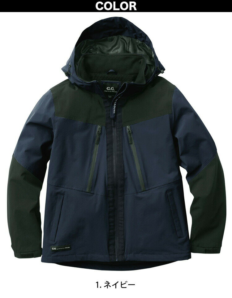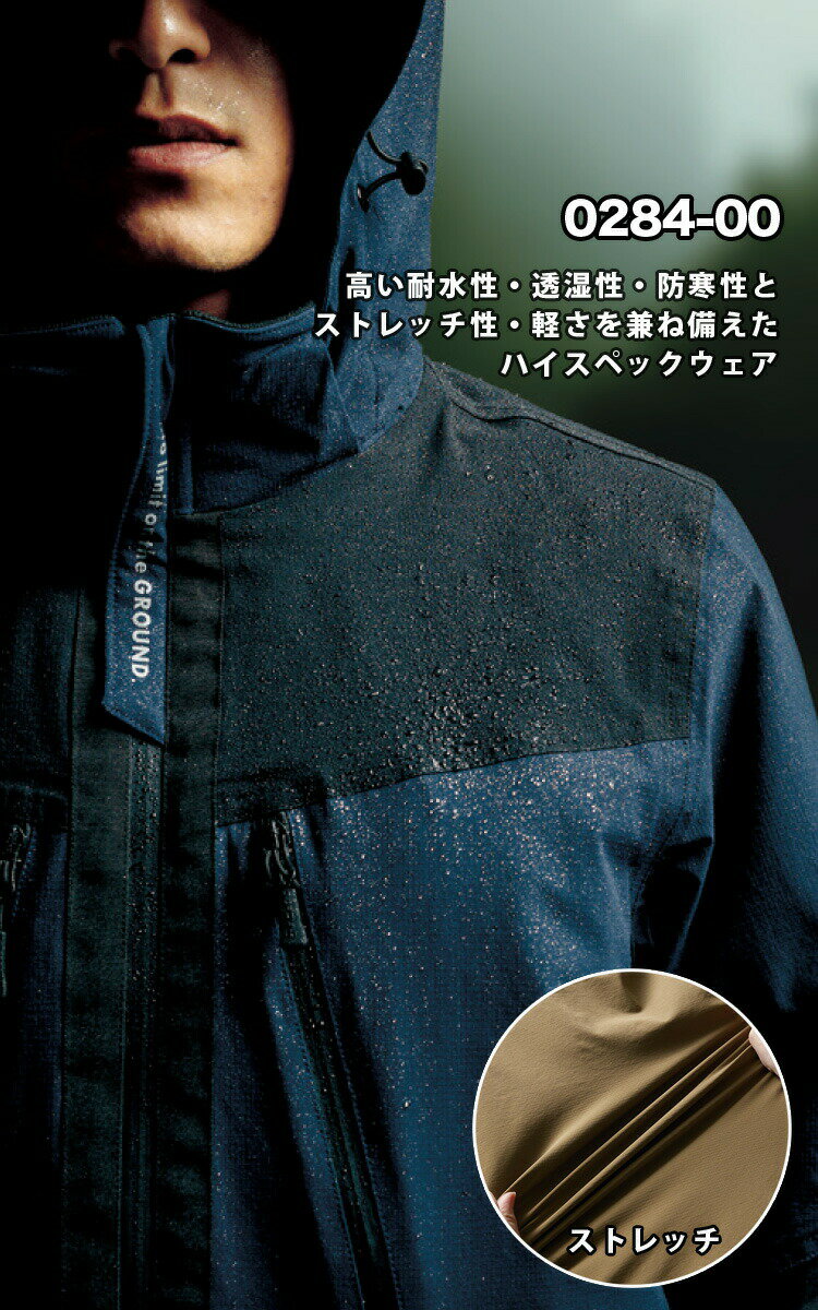 桑和 G.G.no limit on the GROUND. 0284-00 防水防寒ブルゾン 非常に高い透湿性と耐水性、防寒性を兼ね備えながらも ワンランク上の着心地と動きやすさを追求したハイスペックウェア ◆防寒なのに動きやすい縦横ストレッチ生地を使用 ◆冷気の侵入を防ぐ防風性素材 ◆裏地の部分ニット仕様でストレッチ性アップ ◆多少の雨、水をはじきやすい ◆雨、水の侵入を防ぐ防水仕様 ◆反射プリント使いによる高視認性 ◆衣服内が蒸れにくい透湿性素材 ■素材・混率 表:ナイロン85%・ポリウレタン15% 裏:ポリエステル100%(フリース/タフタ) 中綿:ポリエステル100% 樹脂ファスナー ■カラー 1-ネイビー/4-ブラック/87-ライトブラウン ■サイズ S/M/L/LL/3L ※4L/6Lは別ページにて販売しております。